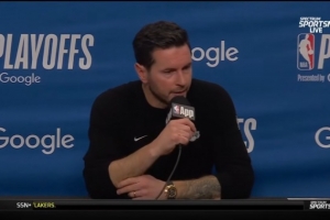 体育资讯4月19日讯 在今天结束的一场季后赛中,湖人以107-98战胜火箭。赛后,湖人主帅JJ·雷迪克接受了媒体的采访。以下是完整版采访内容。