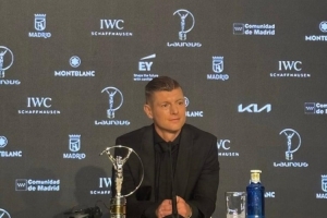 体育资讯4月21日讯 2026年劳伦斯体育颁奖典礼本周一举行,德国/皇马名宿克罗斯获得最佳体育励志奖,德约科维奇为其颁奖,克罗斯随后接受了采访。